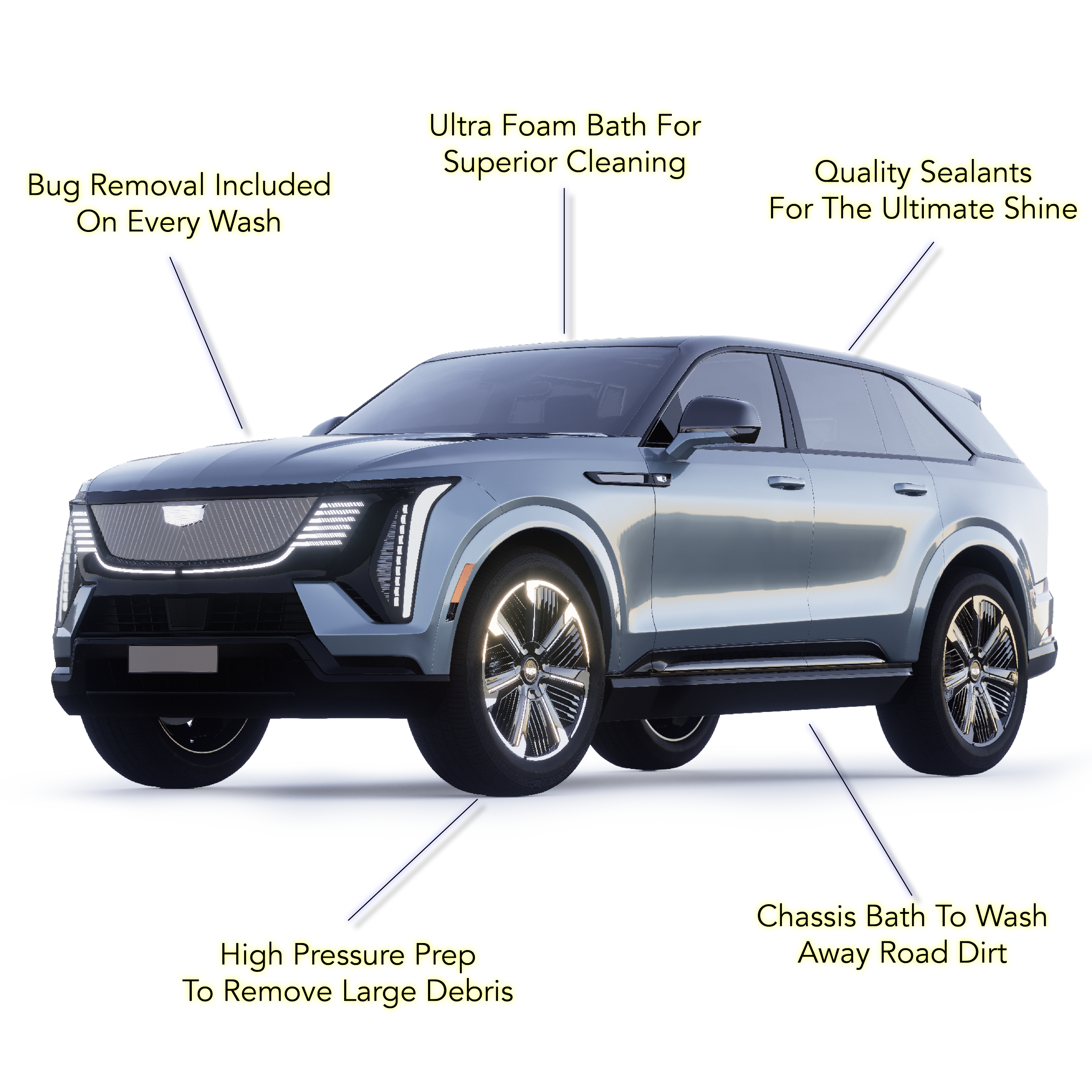 It all begins when you pull in. High Pressure prep by hand gets you ready for the wash. The highest quality cleaners that dissolves dirt and road grime foams onto the car so you can see the clean happening. The cleaners are then gently agitated using equipment made right here in Southeast Michigan, by the Motor City for the Motor City. The contaminants are rinsed off your car as you watch the dirt come off. The wash finishes with the highest quality waxes and sealers including VantaGloss Ceramic Sealer. High Speed dryers help take the water off for a spot less shine. The wash finishes up as our of team members hand dry the car to give you a clean that you can not find any where else.